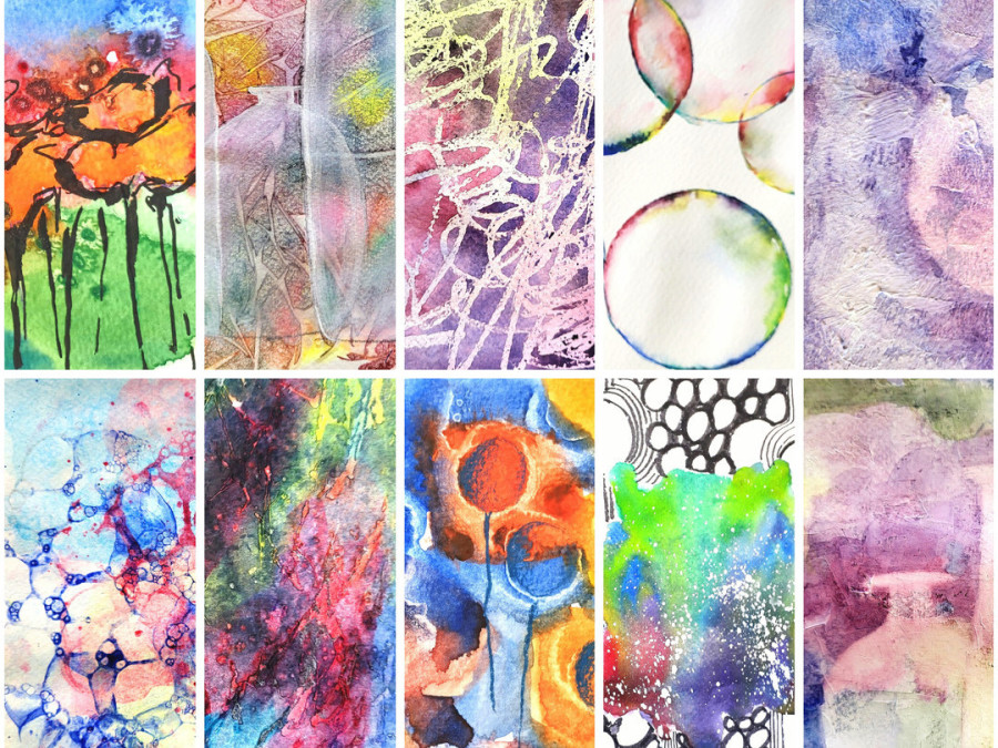 Ein abenteuerlicher Samstag. An welchem mit Aquarellfarben verblüffende Experimente durchgeführt werden (z. B. in Kombination mit Frischhaltefolie, Ölkreiden, Nagellackentferner). Es entstehen ca. 9 Mini-Aquarelle.